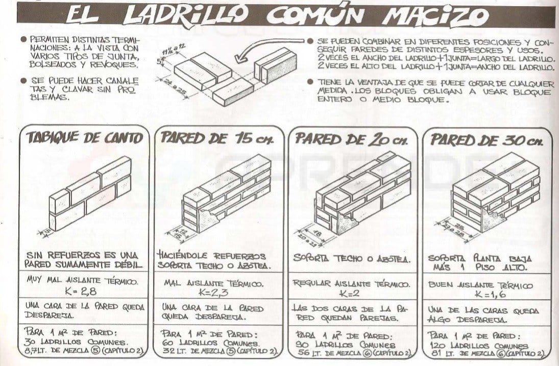 🔹 Levantamiento de muros: Ladrillos comunes, huecos y bloques de hormigón. Uso de mezcla, nivel y plomada.